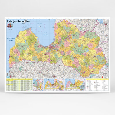 Administrative wall map of Latvia. Laminated (in Latvian)
