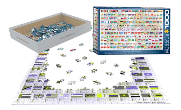From Afghanistan to Zimbabwe, this jigsaw puzzle features all country flags. Vital information such as population,area and capital city are included as well.