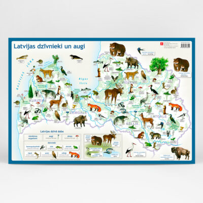 Plastikāta galda paliknis ar Latvijas fizioģeogrāfisko karti.